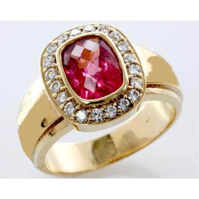 Mainstone: Ruby ; Metal: White or Yellow Gold ; Weight(g): 7 ; Total CTW: 2 ; Diamond Count: 20 ROUND CUT ; Diamond CTW 1: 0.2 ; Clarity :SI-I ; Color: G-H; Gem Count: 1 CUSHION CUT ; Clarity Rating: AA-AAA ; Gem Size(mm): approx. 8x6mm ; Ring S ; MSRP: $2436