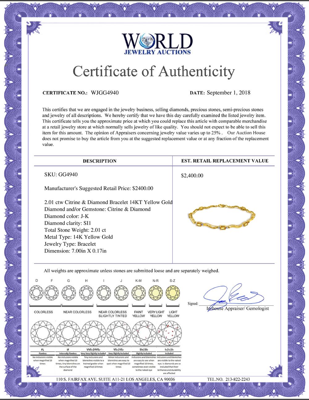 REF-76T7A - SKU: GG4940 ---- Genuine 2.01 ctw Citrine & Diamond Bracelet 14KT Rose Gold