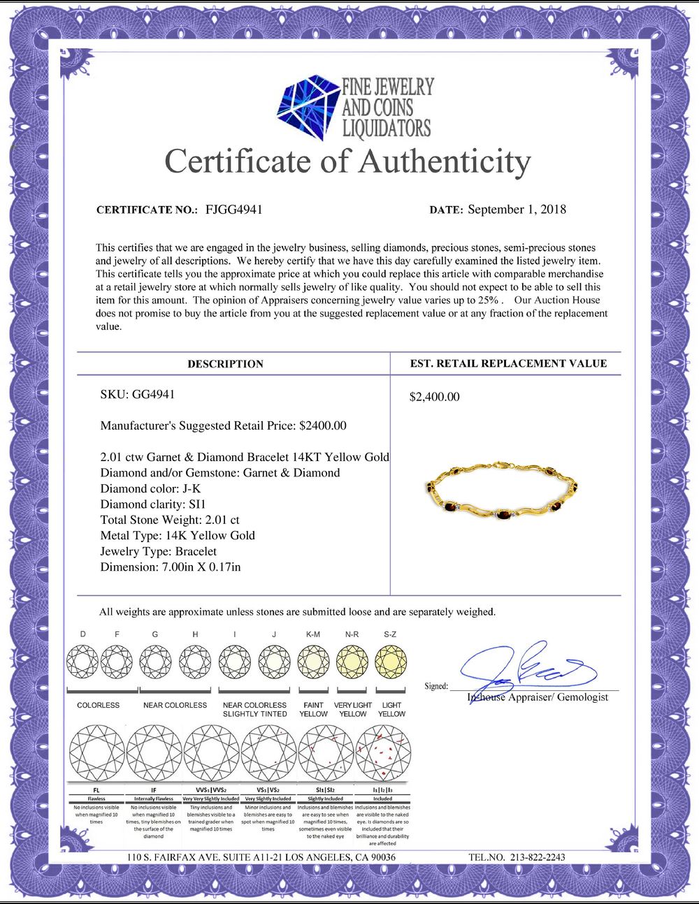 REF-76F7Z - SKU: GG4941 ---- Genuine 2.01 ctw Garnet & Diamond Bracelet 14KT Yellow Gold