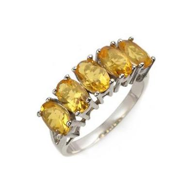 Gemstone: Citirine ; Clarity: SI1-SI2H-J; Gemstone Clarity: AA - AAA: Color: Yellow; Gemstone Count & Color: 5 Oval Cut; Gemstone Weight: 2.02; Metal Purity: 10KT; Metal: White-Gold ; Gold Weight (g) approx: 2.37; Ring Size 6.5; Dimension: Approx. 3/16" x 3/4"