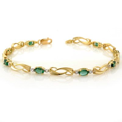 Genuine 2.02 ctw Emerald & Diamond Bracelet Yellow Gold - Retails for $1070 ---- Diamond: 2 Round cut @ 0.02 ctw---- Clarity: SI-I---- Color: H-K----Gemstone: Natural Emerald----Gemstone color: Green----Gemstone quality: Good-to-Very Good----Gemstone Cut & Weight: 8 Oval cut @ 2.0 ctw----Metal Purity & Color : 10K Gold-Yellow----Gold weight: 4.50 grams----Dimension: Approx. 7.25 x 1/8----Shipping: Within 15 business days