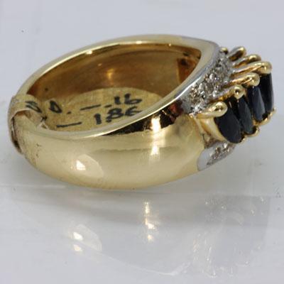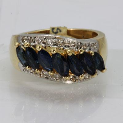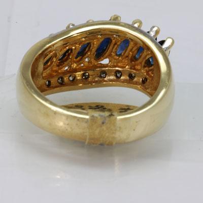 Gemstone: Sapphire ; Gemstone Weight: 1.86 ; Diamond Count: 18RD ; Diamond Weight: 0.16; Metal Purity: 14KT ; Metal: 2 Tone ; Ring Size: 6.5