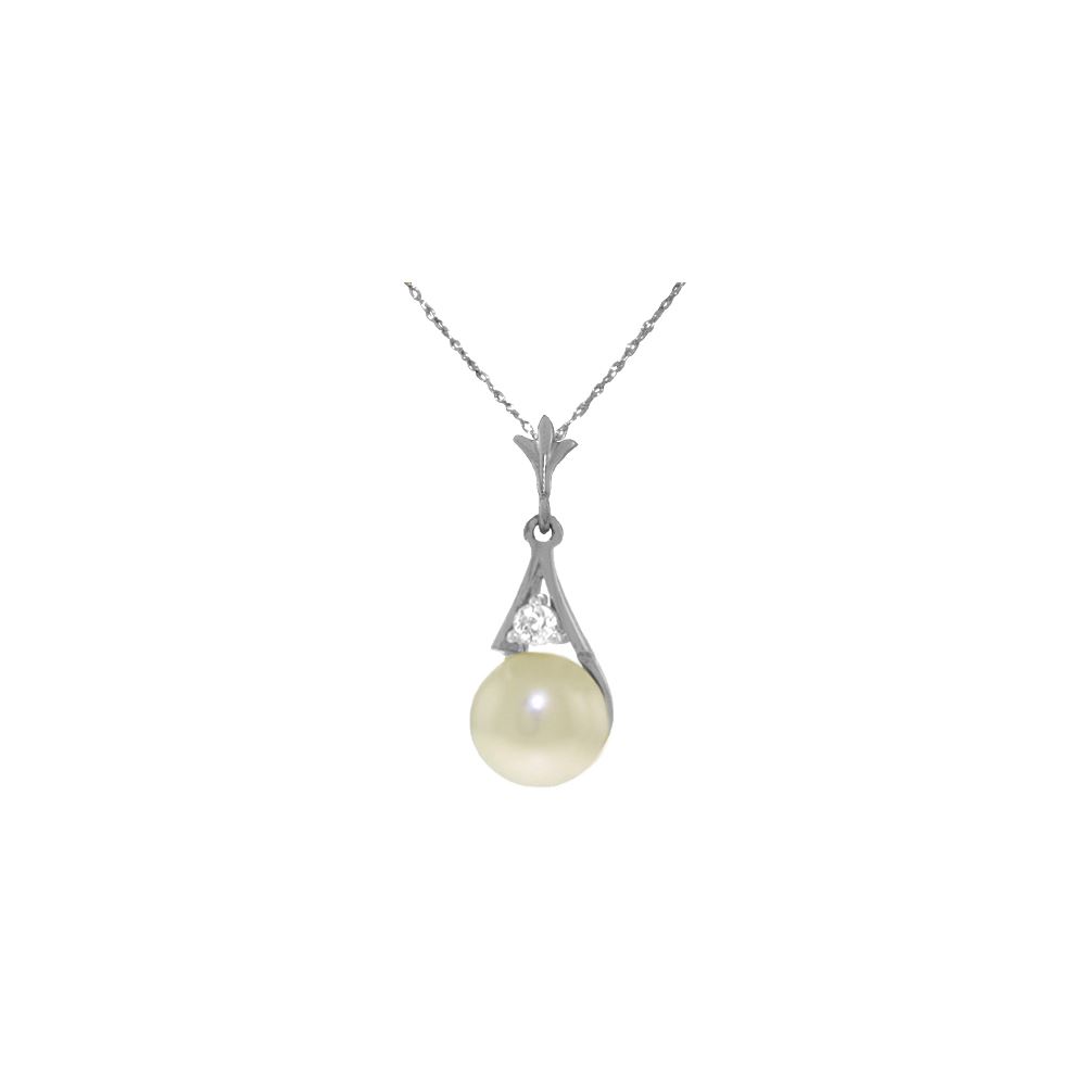 Genuine 14K White Gold 2.03 ctw Pearl & Diamond Necklace