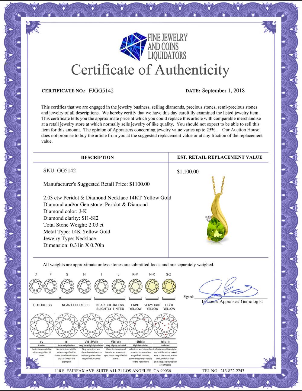 REF-35A9K - SKU: GG5142 ---- Genuine 2.03 ctw Peridot & Diamond Necklace 14KT Yellow Gold