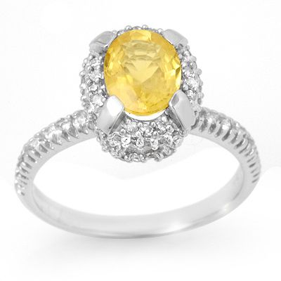 Genuine 2.10ctw Yellow Sapphire & Diamond Ring 14K Gold - Retails for $2310 ---- Diamond: 82 Round cut @ 0.60 ctw---- Clarity: SI-I---- Color: H-K----Gemstone: Natural Sapphire----Gemstone color: Yellow----Gemstone quality: Good-to-Very Good----Gemstone Cut & Weight: 1 Oval cut @ 1.50 ctw----Metal Purity & Color : 14K Gold-White----Gold weight: 3.60 grams----Ring size (US): 6.75----Dimension: Approx. 3/8 x 3/16--------Shipping: Within 15 business days
