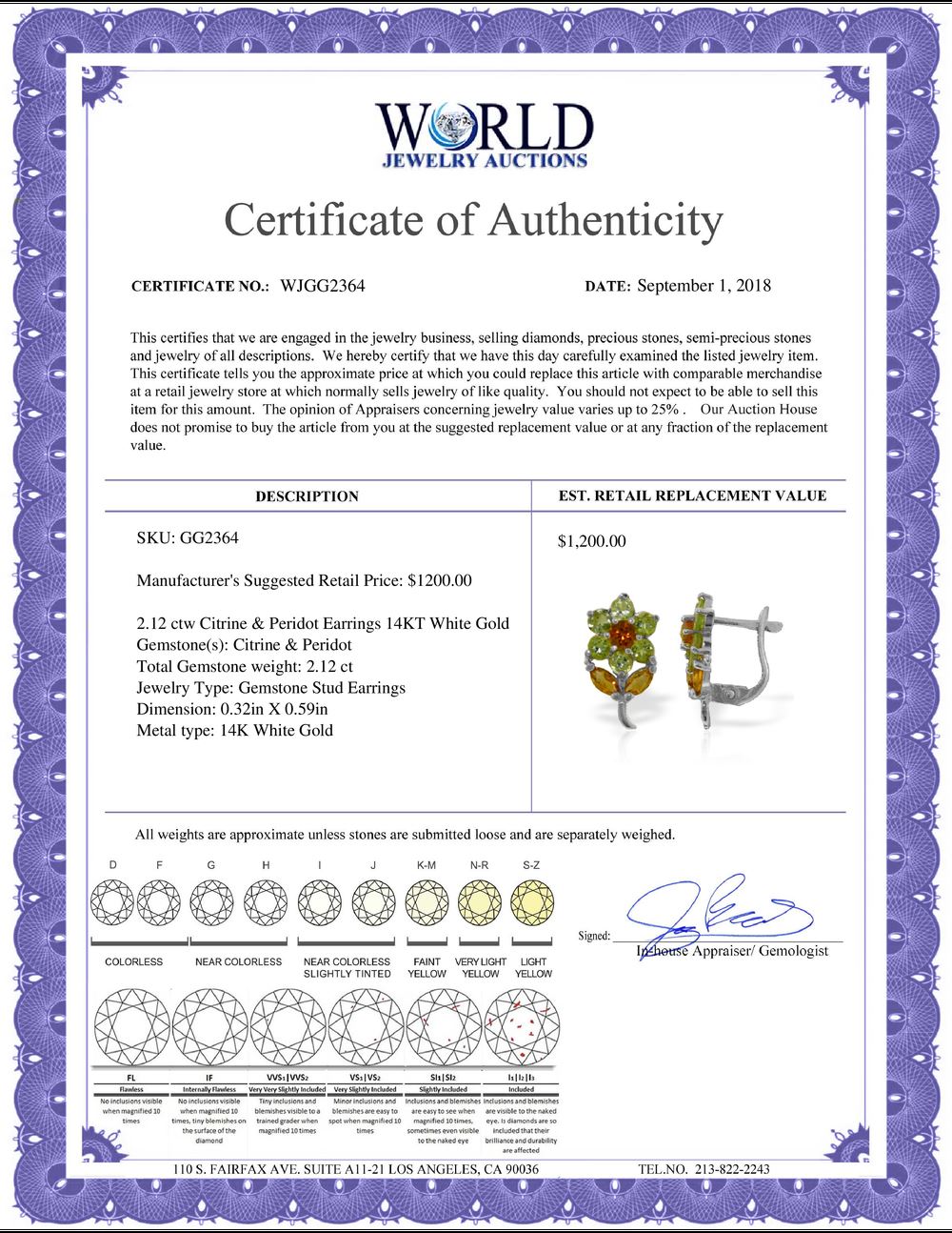 REF-36H8X - SKU: GG2364 ---- Genuine 2.12 ctw Citrine & Peridot Earrings 14KT Rose Gold
