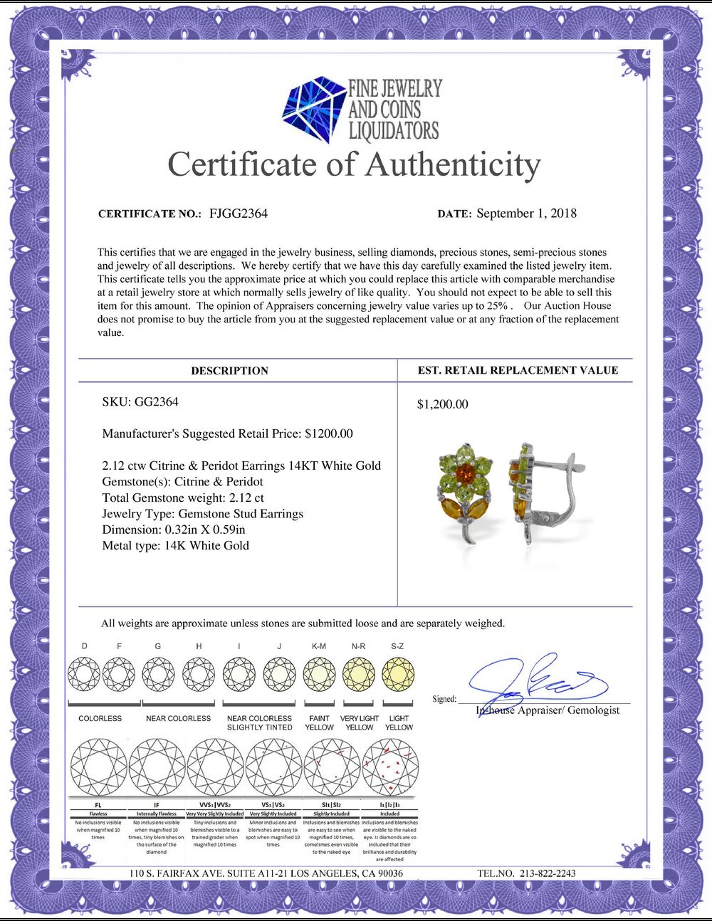 REF-36H8X - SKU: GG2364 ---- Genuine 2.12 ctw Citrine & Peridot Earrings 14KT Rose Gold
