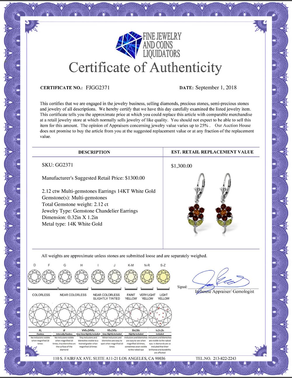 REF-42Z4N - SKU: GG2371 ---- Genuine 2.12 ctw Multi-gemstones Earrings 14KT White Gold