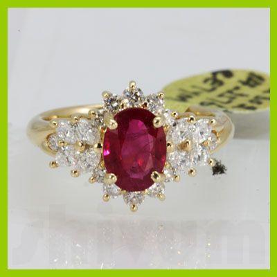 Gemstone: Ruby ; Gemstone Shape: Oval ; Gemstone Size: 8X6 ; Gemstone Weight: 1.39 ; Diamond Count: 12RD ; Diamond Weight: 0.73; Metal Purity: 14KT ; Metal: Yellow Gold ; Ring Size: 6.5