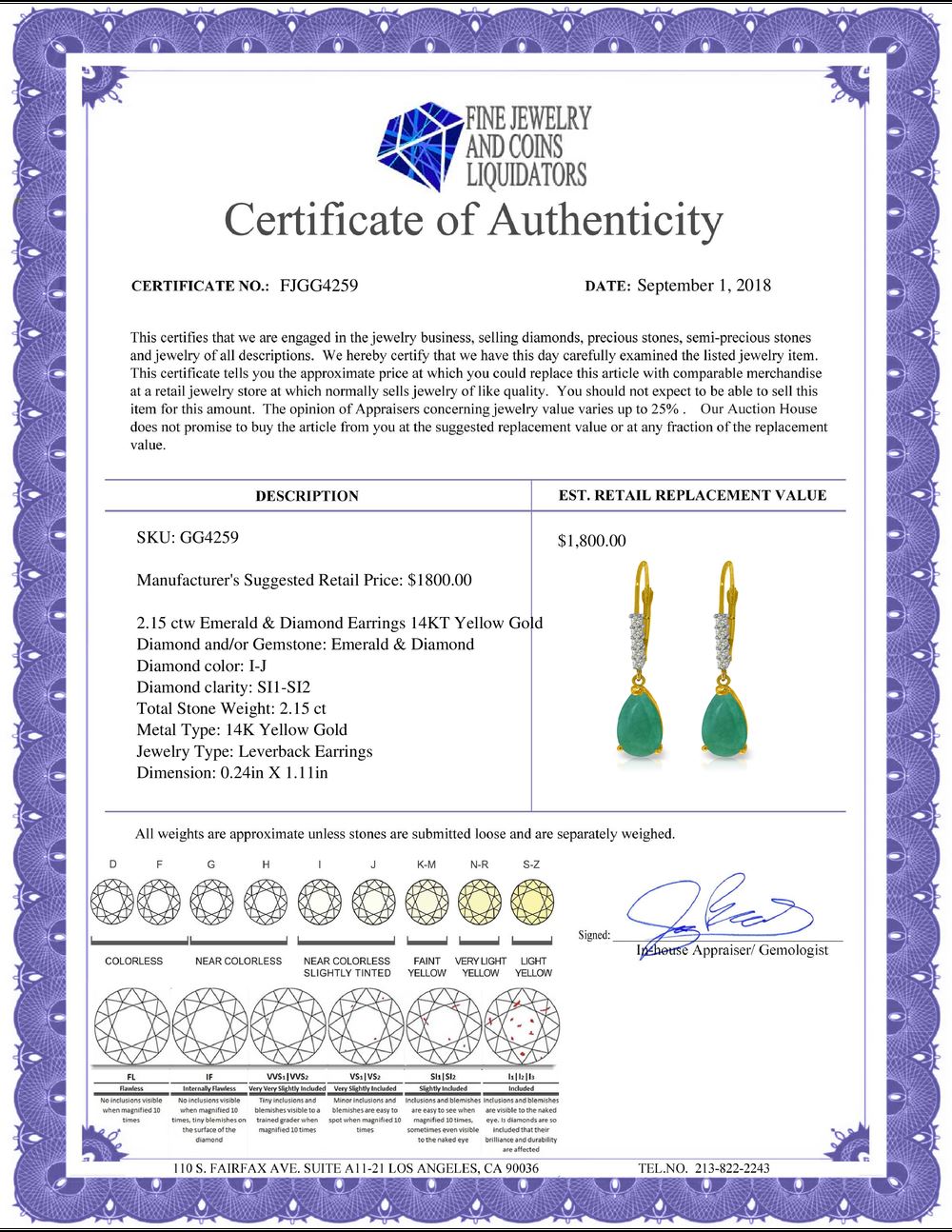 REF-59Z6N - SKU: GG4259 ---- Genuine 2.15 ctw Emerald & Diamond Earrings 14KT Yellow Gold