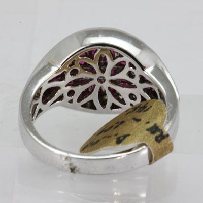 Gemstone: Ruby ; Gemstone Weight: 2.09 ; Diamond Count: 14RD ; Diamond Weight: 0.09; Metal Purity: 14KT ; Metal: White Gold ; Ring Size: 6.5