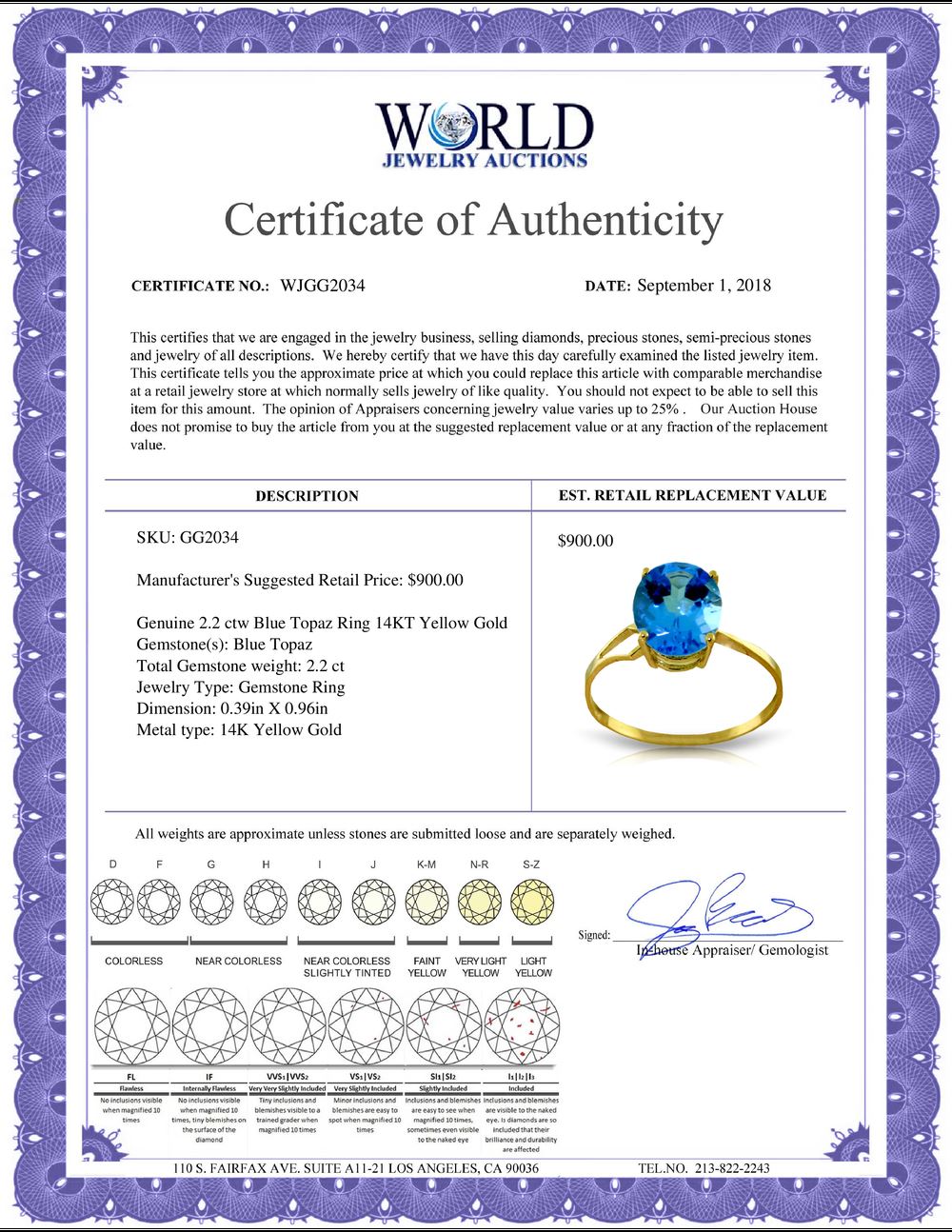 REF-27M8T - SKU: GG2034 ---- Genuine 2.2 ctw Blue Topaz Ring 14KT Yellow Gold