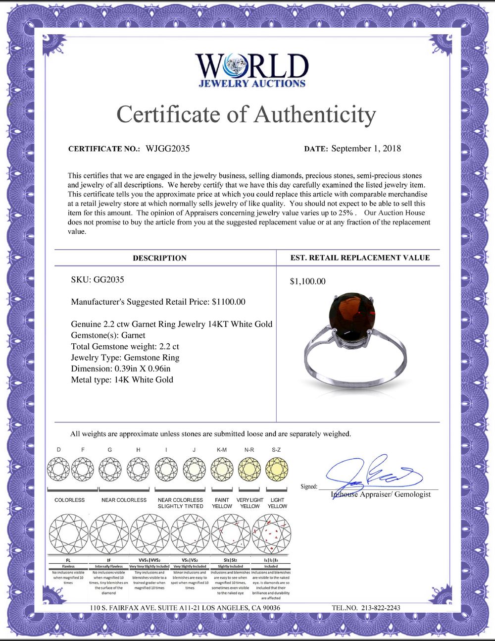 REF-34W3Y - SKU: GG2035 ---- Genuine 2.2 ctw Garnet Ring 14KT White Gold
