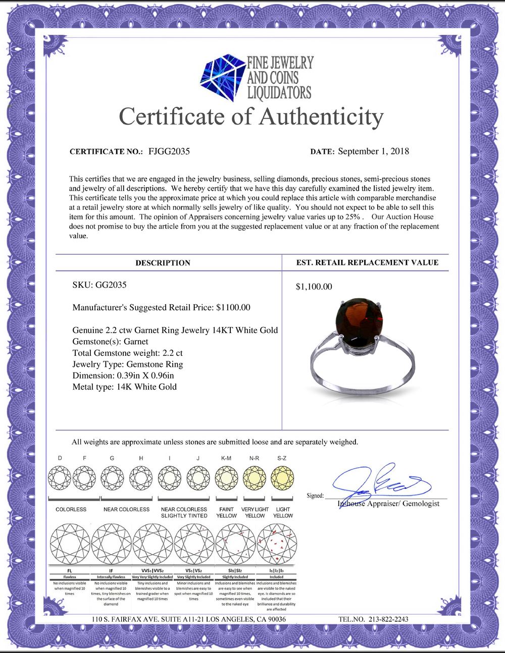 REF-34W3Y - SKU: GG2035 ---- Genuine 2.2 ctw Garnet Ring 14KT White Gold