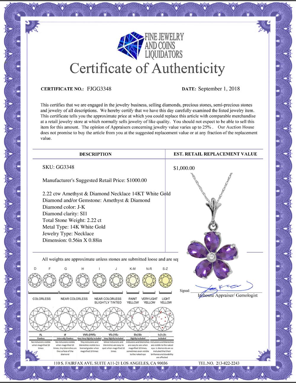 REF-30T2A - SKU: GG3348 ---- Genuine 2.22 ctw Amethyst & Diamond Necklace 14KT White Gold