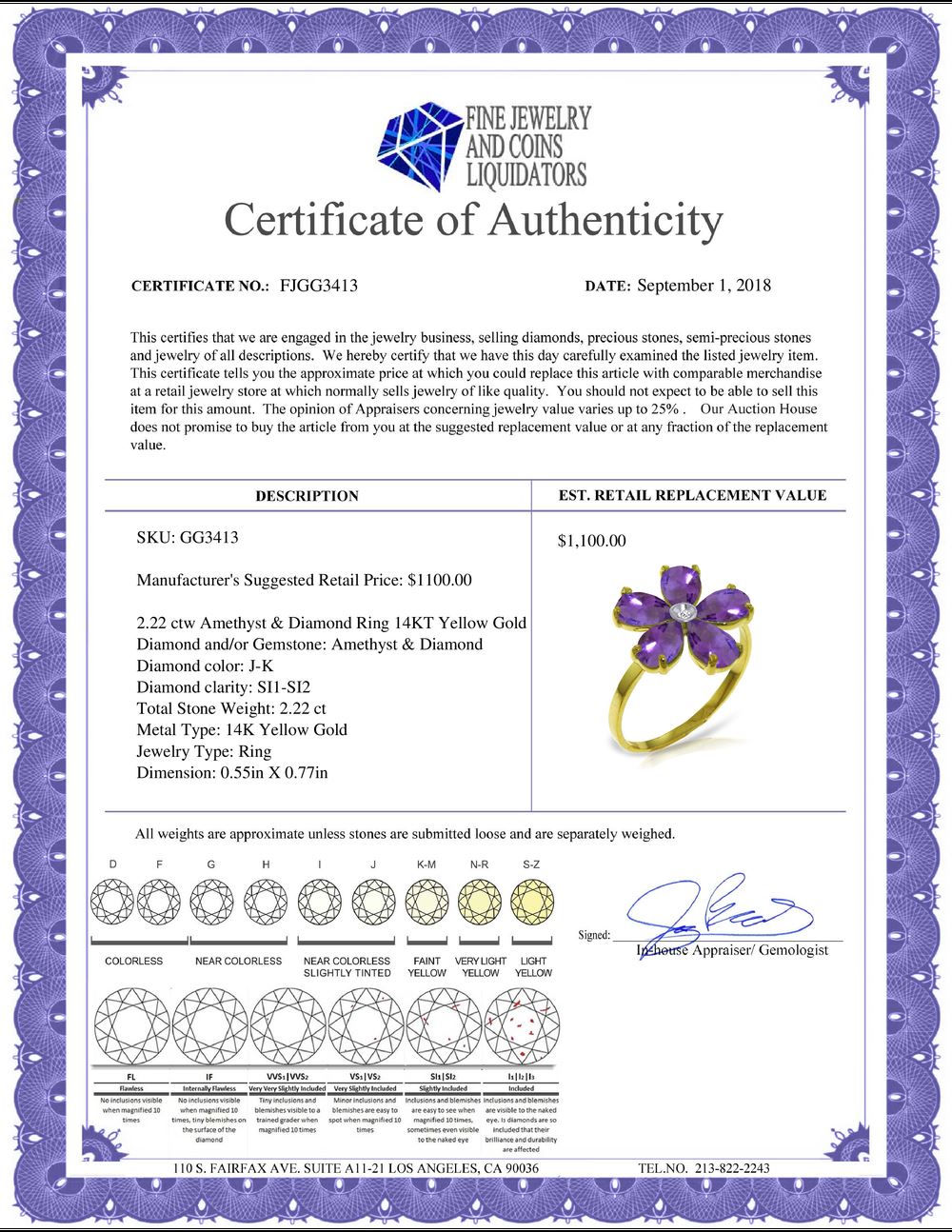 Genuine 14K Yellow Gold 2.22 ctw Amethyst & Diamond Ring