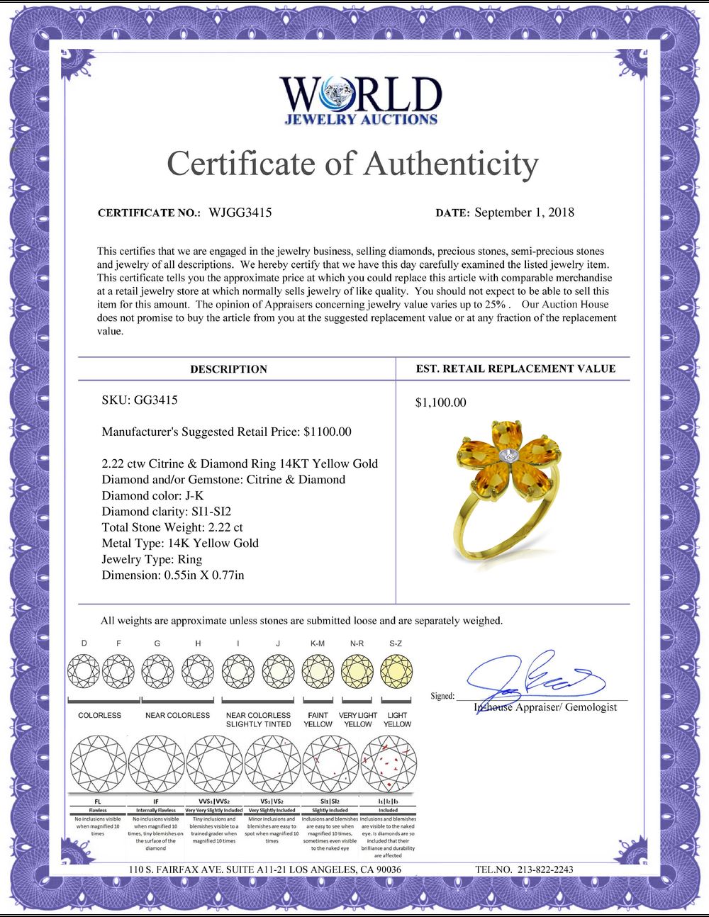 REF-35Y9F - SKU: GG3415 ---- Genuine 2.22 ctw Citrine & Diamond Ring 14KT White Gold