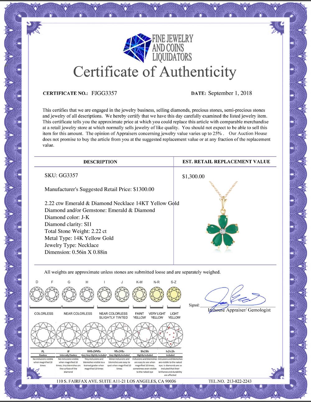 REF-40P7H - SKU: GG3357 ---- Genuine 2.22 ctw Emerald & Diamond Necklace 14KT Yellow Gold