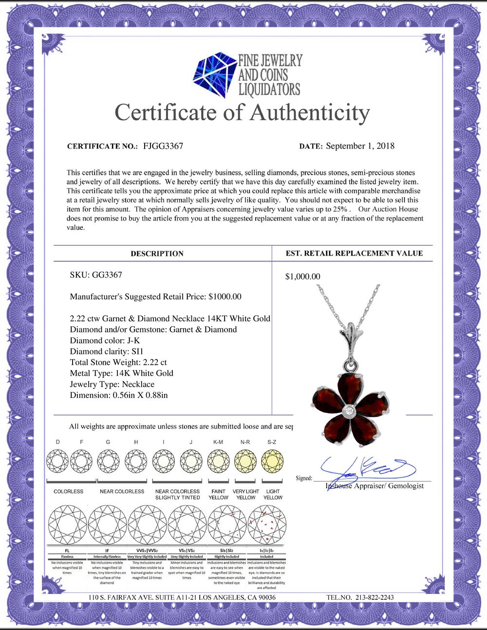 REF-30Z2N - SKU: GG3367 ---- Genuine 2.22 ctw Garnet & Diamond Necklace 14KT White Gold