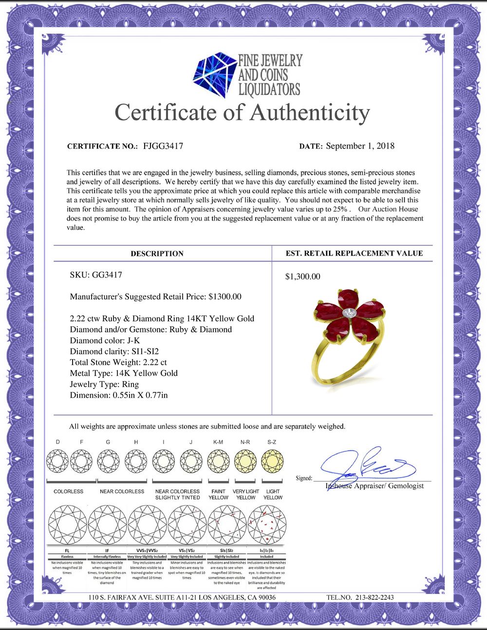 Genuine 14K Yellow Gold 2.22 ctw Ruby & Diamond Ring