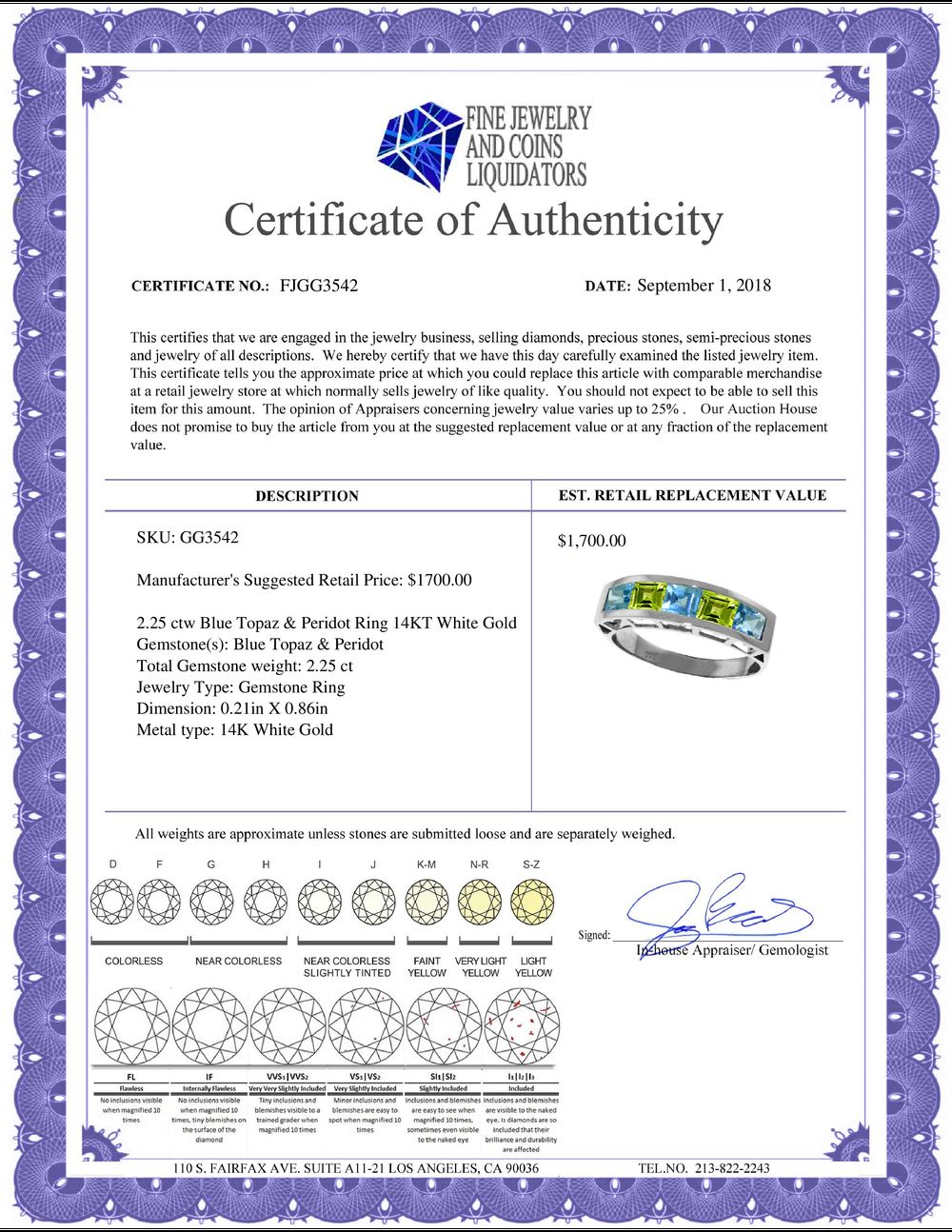 REF-54Y2F - SKU: GG3542 ---- Genuine 2.25 ctw Blue Topaz & Peridot Ring 14KT White Gold