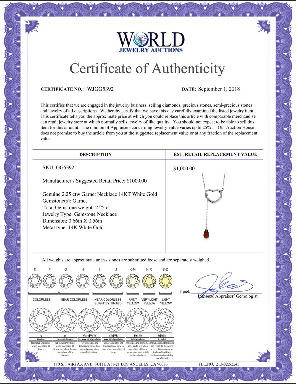 REF-32N9R - SKU: GG5392 ---- Genuine 2.25 ctw Garnet Necklace 14KT Rose Gold