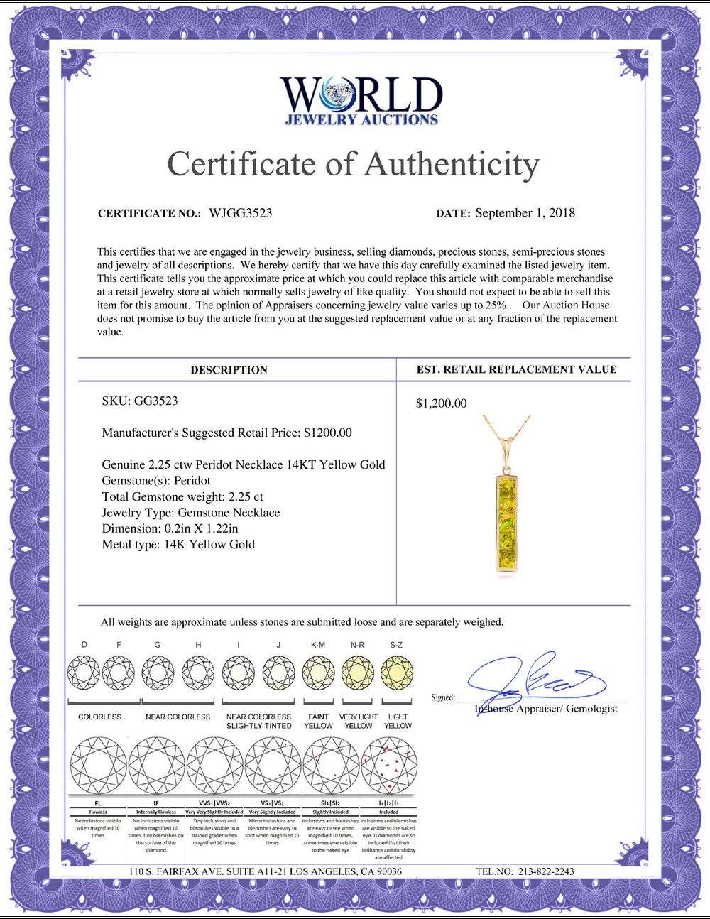 REF-36N9R - SKU: GG3523 ---- Genuine 2.25 ctw Peridot Necklace 14KT Yellow Gold