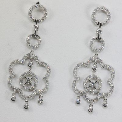 Main Stone: Diamond ; Type: Bridal Legacy Chandelier Earring ; Diamond Count 1: 170RD ; Diamond Weight 1: 2.26 ; Diamond Count 2: ; Metal Purity: 18KT ; Metal: White Gold ; Diamond Clarity: SI1-SI2 ; Diamond Color: G-H ; Weight(g): 6.98g