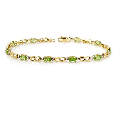 Genuine 2.26 ctw Peridot & Diamond Bracelet Yellow Gold * MSRP $930 ---- Diamond: 1 Round cut @ 0.01 ctw---- Clarity: SI-I---- Color: H-K----Gemstone: Natural Peridot----Gemstone color: Green----Gemstone quality: Good-to-Very Good----Gemstone Cut & Weight: 10 Oval cut @ 2.25 ctw----Metal Purity & Color : 10K Gold-Yellow----Gold weight: 3.70 grams----Dimension: Approx. 7 x 1/8-------Shipping: Within 15 business days