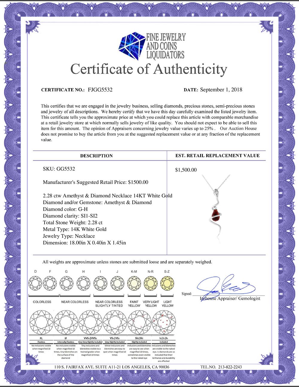 REF-49X3M - SKU: GG5532 ---- Genuine 2.28 ctw Amethyst & Diamond Necklace 14KT Yellow Gold