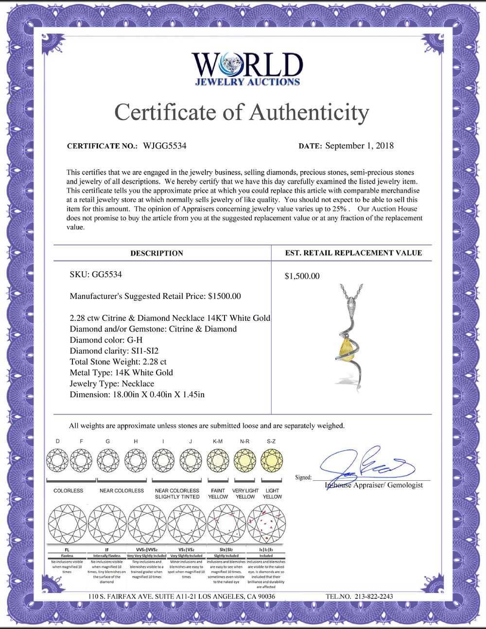 REF-49W3Y - SKU: GG5534 ---- Genuine 2.28 ctw Citrine & Diamond Necklace 14KT White Gold