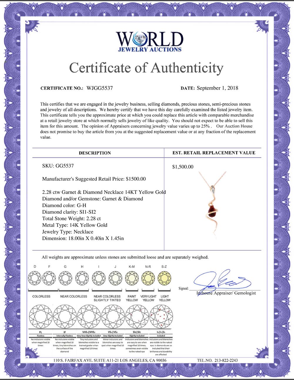 REF-49P3H - SKU: GG5537 ---- Genuine 2.28 ctw Garnet & Diamond Necklace 14KT Yellow Gold