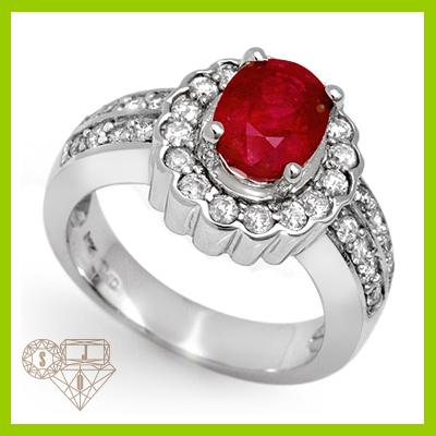 Gemstone: Ruby; Diamond Count: 28 RD ; Diamond Weight: 0.77; Clarity: SI1-SI2H-J; Gemstone Clarity: AA - AAA: Color: Red; Gemstone Count & Color: 1 Oval Cut ; Gemstone Weight: 1.52; Metal Purity: 14KT; Metal: White-Gold ; Gold Weight (g) approx: 8.52; Ring Size 6.5; Dimension: Approx. 1/2" x 3/4"