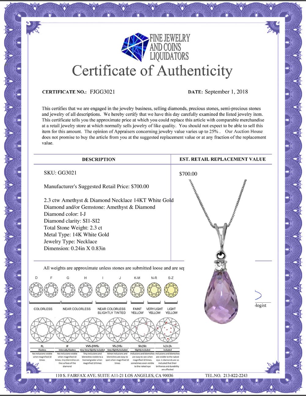 REF-22H8X - SKU: GG3021 ---- Genuine 2.3 ctw Amethyst & Diamond Necklace 14KT Rose Gold