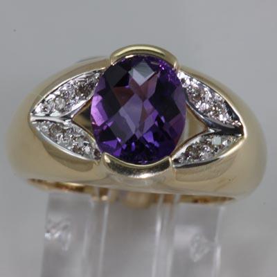 Main Stone: Amethyst ; Diamond CTW: 0.11 ; Gemsonte CTW: 2.2 : Main Stone Treatment: Not Enhanced ; Exact Total Weight: 2.31 ; Metal: Yellow Gold ; Ring Size: 7 ; Main Stone Color: Purple ; Metal Purity: 14K (Soild, Unplated) ; Condition: New
