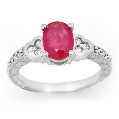 Genuine 2.31 ctw Ruby & Diamond Ring 14K White Gold * MSRP $1860 ---- Diamond: 16 Round cut @ 0.52 ctw---- Clarity: SI-I---- Color: H-K----Gemstone: Natural Ruby----Gemstone color: Red----Gemstone quality: Good-to-Very Good----Gemstone Cut & Weight: 1 Oval cut @ 1.79 ctw----Metal Purity & Color : 14K Gold-White----Gold weight: 4.0 grams----Ring size (US): 6.5----Dimension: Approx. 5/16 x 3/4-----------Shipping: Within 15 business days