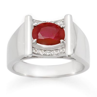 Genuine 2.33 ctw Ruby & Diamond Men's Ring White Gold * MSRP $2000 ---- Diamond: 10 Round cut @ 0.08 ctw---- Clarity: SI-I---- Color: H-K----Gemstone: Natural Ruby----Gemstone color: Red----Gemstone quality: Good-to-Very Good----Gemstone Cut & Weight: 1 Oval cut @ 2.25 ctw----Metal Purity & Color : 10K Gold-White----Gold weight: 8.50 grams----Ring size (US): 10----Dimension: Approx. 3/8 x 3/8--------Shipping: Within 15 business days
