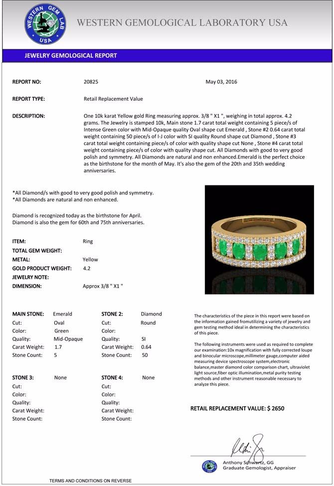total approx. 4.2 grams. The Jewelry is stamped 10k, Main stone 1.7 carat total weight containing 5 piece/s of Intense Green color with