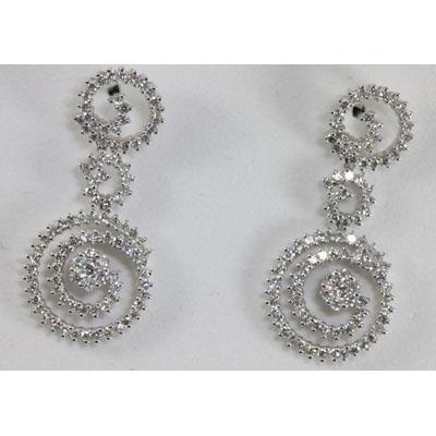 Main Stone: Diamond ; Type: Spiral Teardrop Earring ; Diamond Count 1: 204RD ; Diamond Weight 1: 2.34 ; Diamond Count 2: ; Metal Purity: 18KT ; Metal: White Gold ; Diamond Clarity: SI1-SI2 ; Diamond Color: G-H ; Weight(g): 7.16g