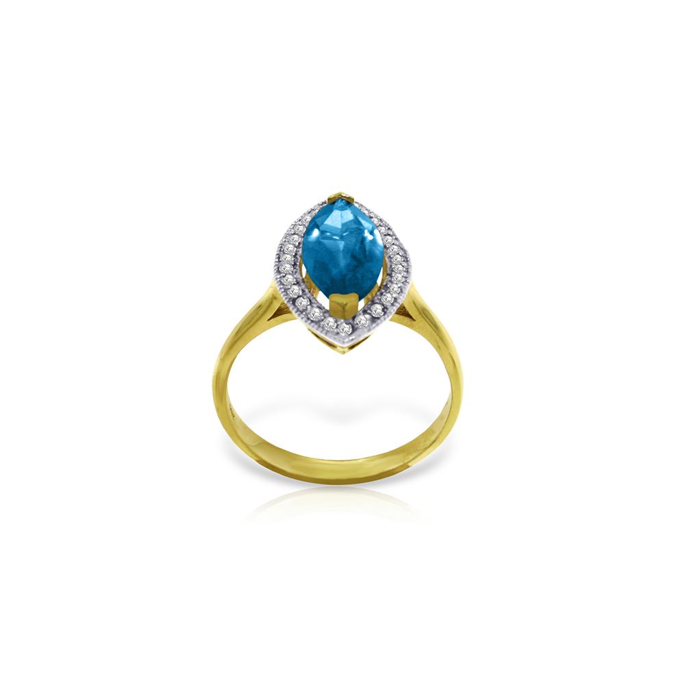 Genuine 14K Yellow Gold 2.4 ctw Blue Topaz & Diamond Ring