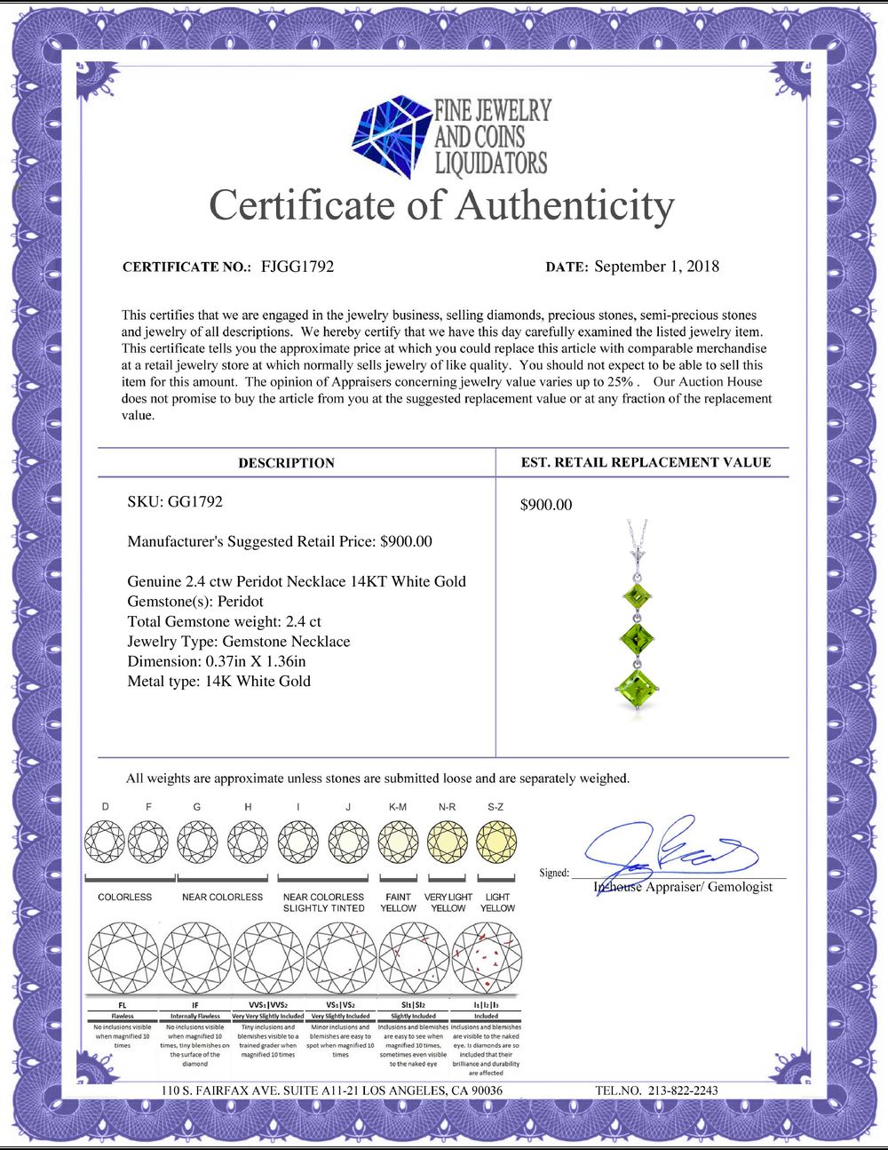 REF-29H7X - SKU: GG1792 ---- Genuine 2.4 ctw Peridot Necklace 14KT Rose Gold