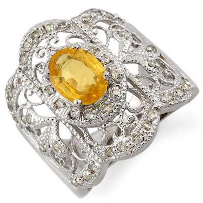Genuine 2.40 ctw Yellow Sapphire & Diamond Ring Gold - Retails for $2610 ---- Diamond: 44 Round cut @ 0.65 ctw---- Clarity: SI-I---- Color: H-K----Gemstone: Natural Sapphire----Gemstone color: Yellow----Gemstone quality: Good-to-Very Good----Gemstone Cut & Weight: 1 Oval cut @ 1.75 ctw----Metal Purity & Color : 10K Gold-White----Gold weight: 6.75 grams----Ring size (US): 7----Dimension: Approx. 13/16 x 3/4--------Shipping: Within 15 business days