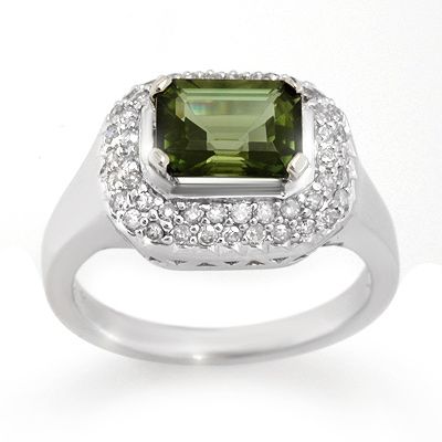 Genuine 2.40ctw Green Tourmaline & Diamond Ring Gold - Retails for $2680 ---- Diamond: 52 Round cut @ 0.40 ctw---- Clarity: SI-I---- Color: H-K----Gemstone: Natural Tourmaline----Gemstone color: Green----Gemstone quality: Good-to-Very Good----Gemstone Cut & Weight: 1 Emerald cut @ 2.0 ctw----Metal Purity & Color : 14K Gold-White----Gold weight: 6.20 grams----Ring size (US): 6.75----Dimension: Approx. 7/16 x 9/16--------Shipping: Within 15 business days