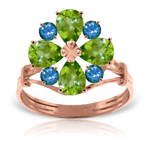 REF-48P3H ---- SKU:GG-2227 ---- Manufacturer's Suggested Retail Price: $1500.00 ---- Genuine 14K Rose Gold 2.43 ctw Peridot & Blue Topaz Ring