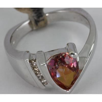 Gemstone: Pink Tourmaline ; Diamond Count 1: 4RD ; Diamond Weight: 0.14 ; Gemstone Color: Pink ; Gemstone Count: 1 Pear Shape ; Gemstone Weight: 2.29 ; Dimension: 9X7MM ; Metal Purity: 14KT ; Metal: Gold-White ; Ring Size: 7