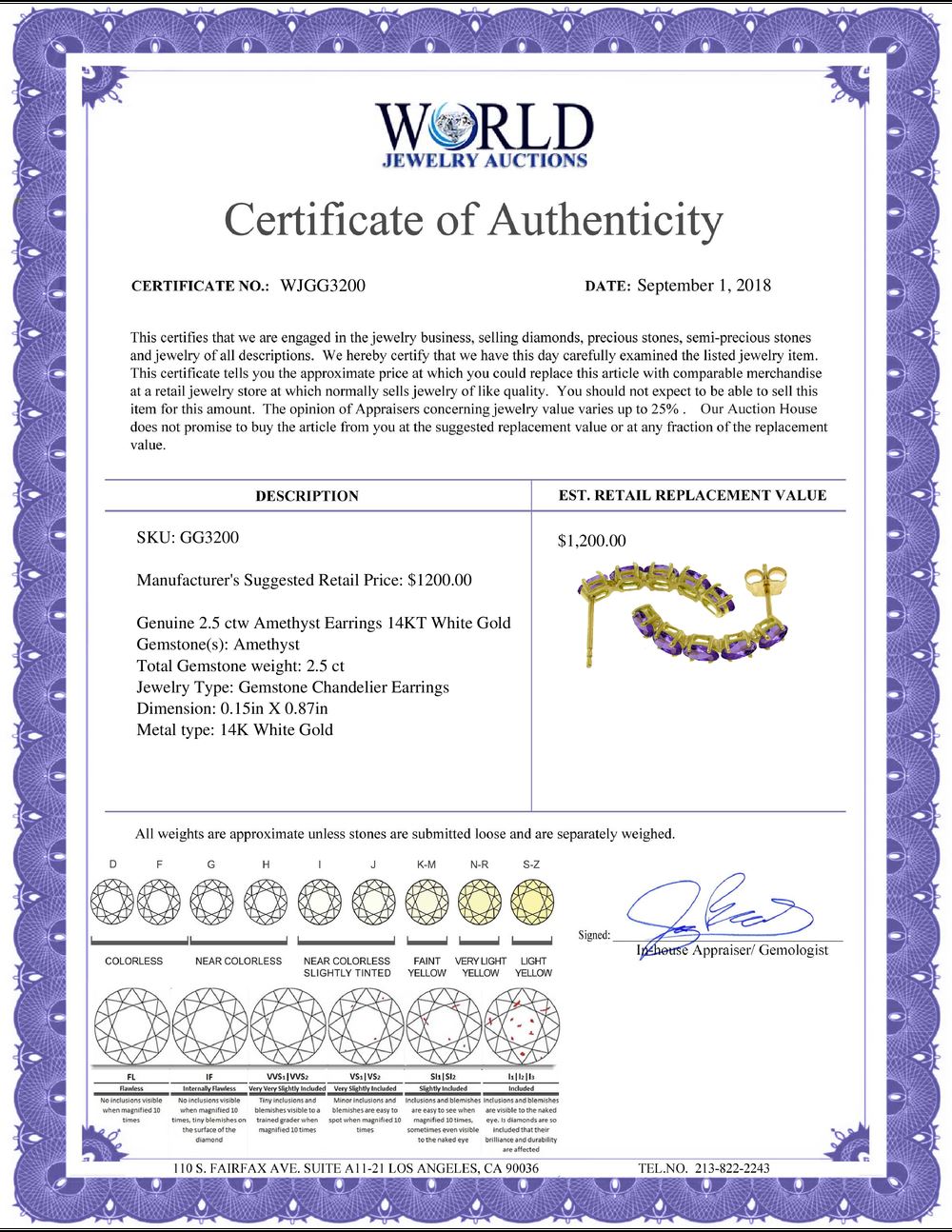 All property is sold “AS IS”, and ALL SALES ARE FINAL. Property is open to thorough public inspection. It is the Bidder’s responsibility to determine condition, age, genuineness, value or any other determinative factor. WJA may attempt to describe the merchandise in advertising and on the Internet but makes no representations. In no event shall WORLD JEWELRY AUCTION be held responsible for having made or implied any warranty of merchantability or fitness for a particular purpose. Bidder shall be the sole judge of value.