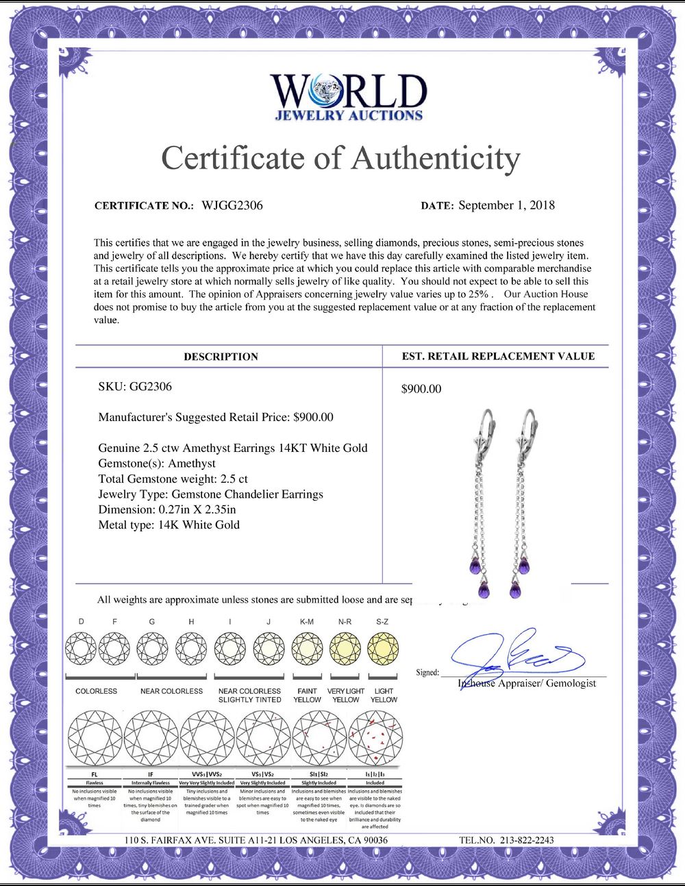 REF-29R7P - SKU: GG2306 ---- Genuine 2.5 ctw Amethyst Earrings 14KT White Gold