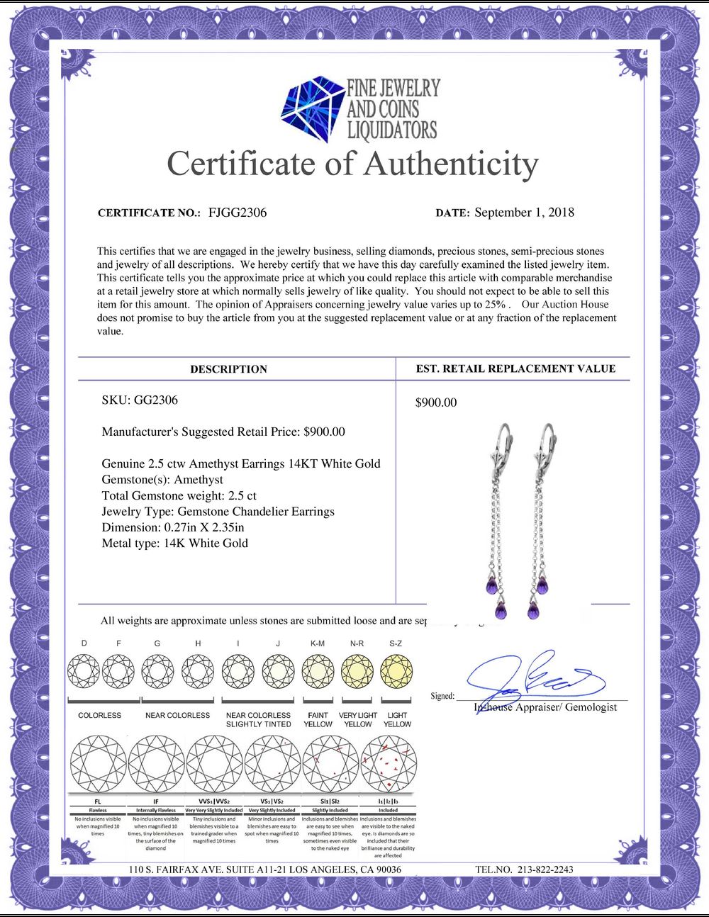 REF-29R7P - SKU: GG2306 ---- Genuine 2.5 ctw Amethyst Earrings 14KT White Gold