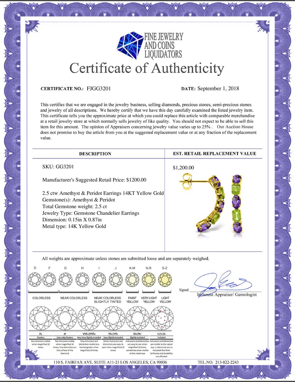 Genuine 14K Yellow Gold 2.5 ctw Amethyst & Peridot Earrings