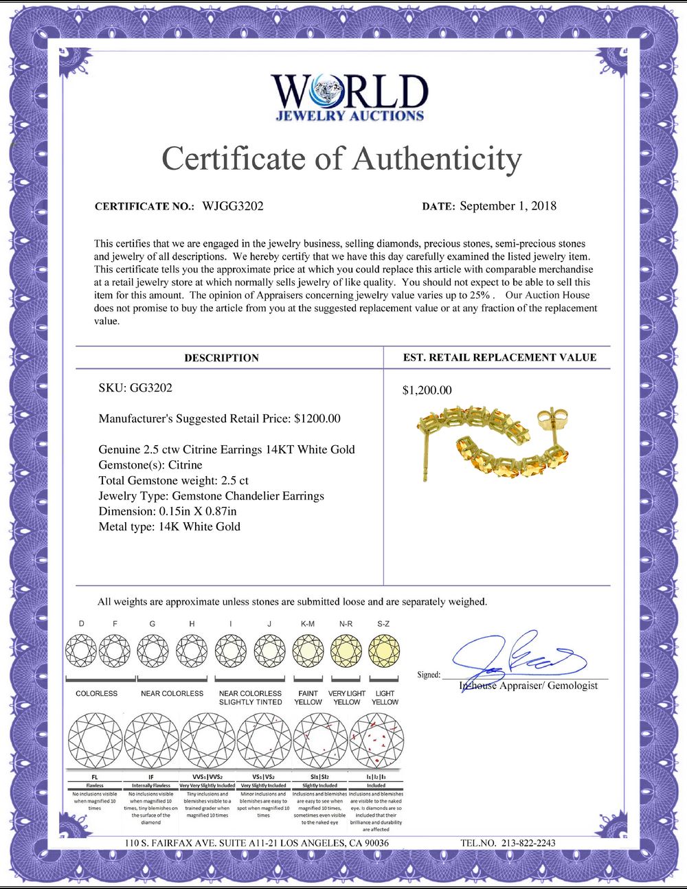 REF-37N4R - SKU: GG3202 ---- Genuine 2.5 ctw Citrine Earrings 14KT White Gold